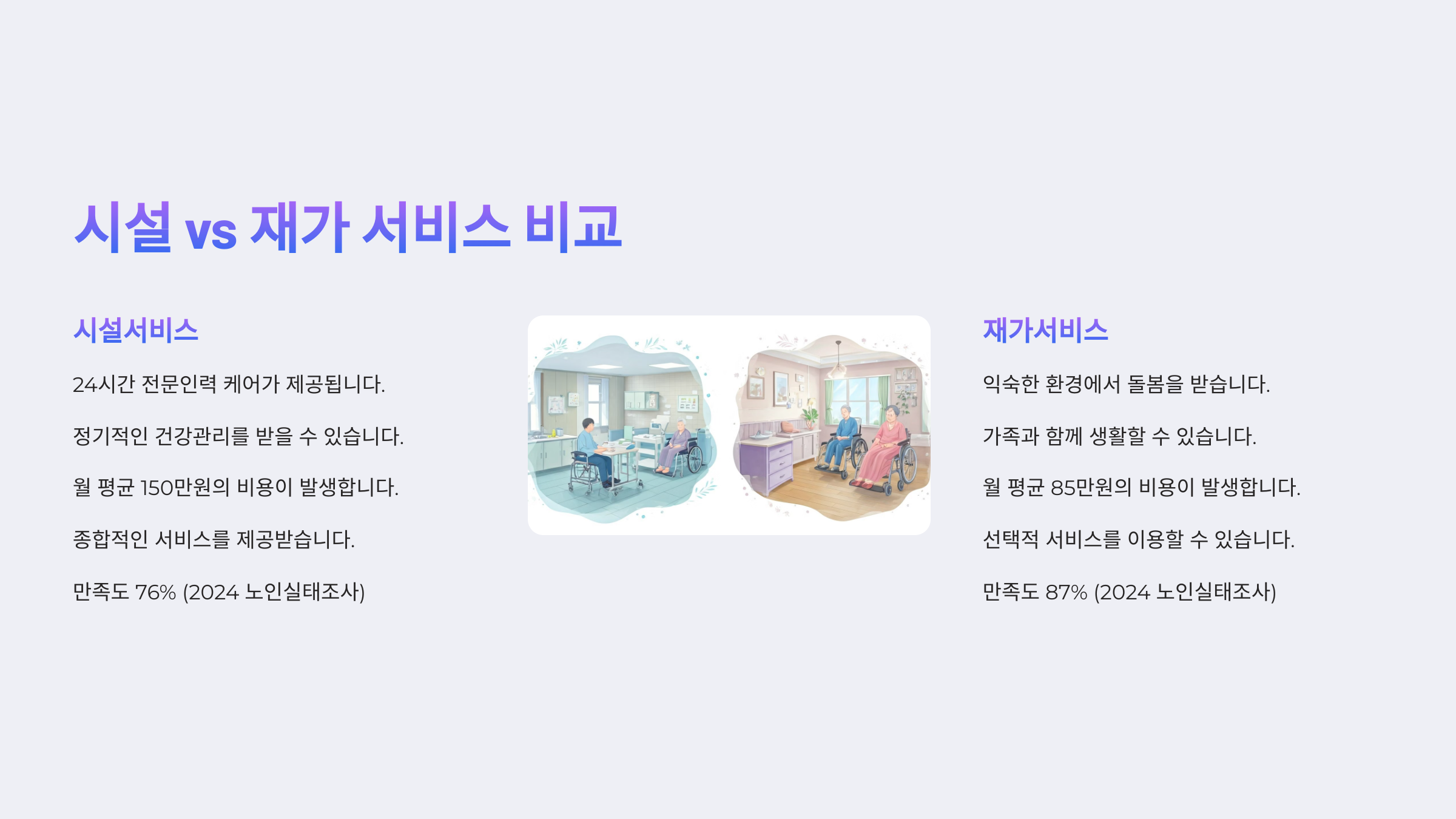 🏥 시설 vs 재가 서비스 비교