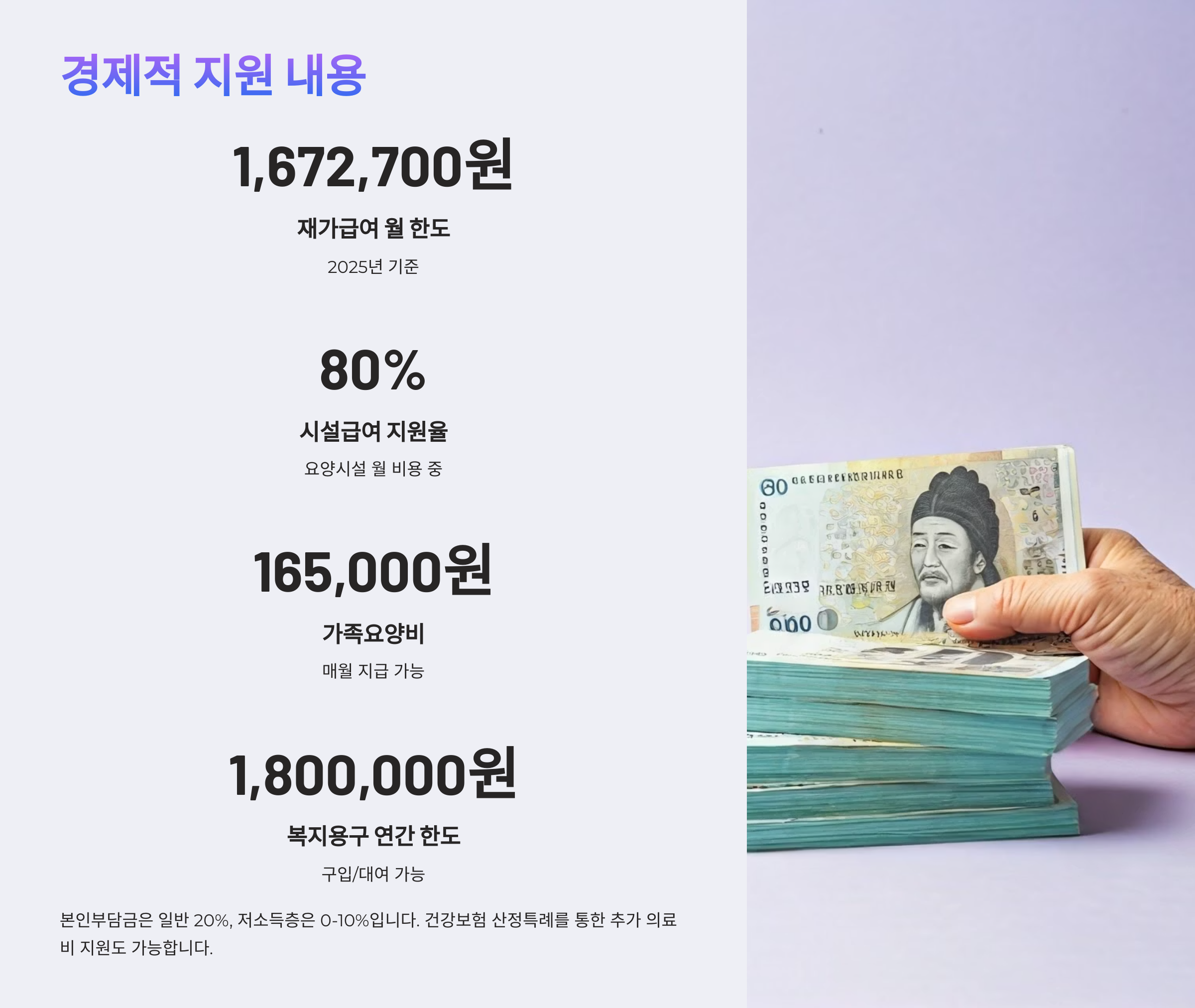 2025년 기준으로 월 최대 약 176만 원까지 요양급여가 제공된답니다.