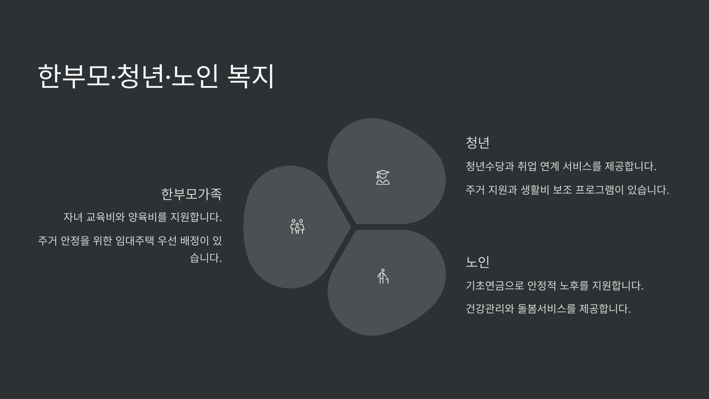 👨👩👧 한부모·청년·노인 복지도 있어요!