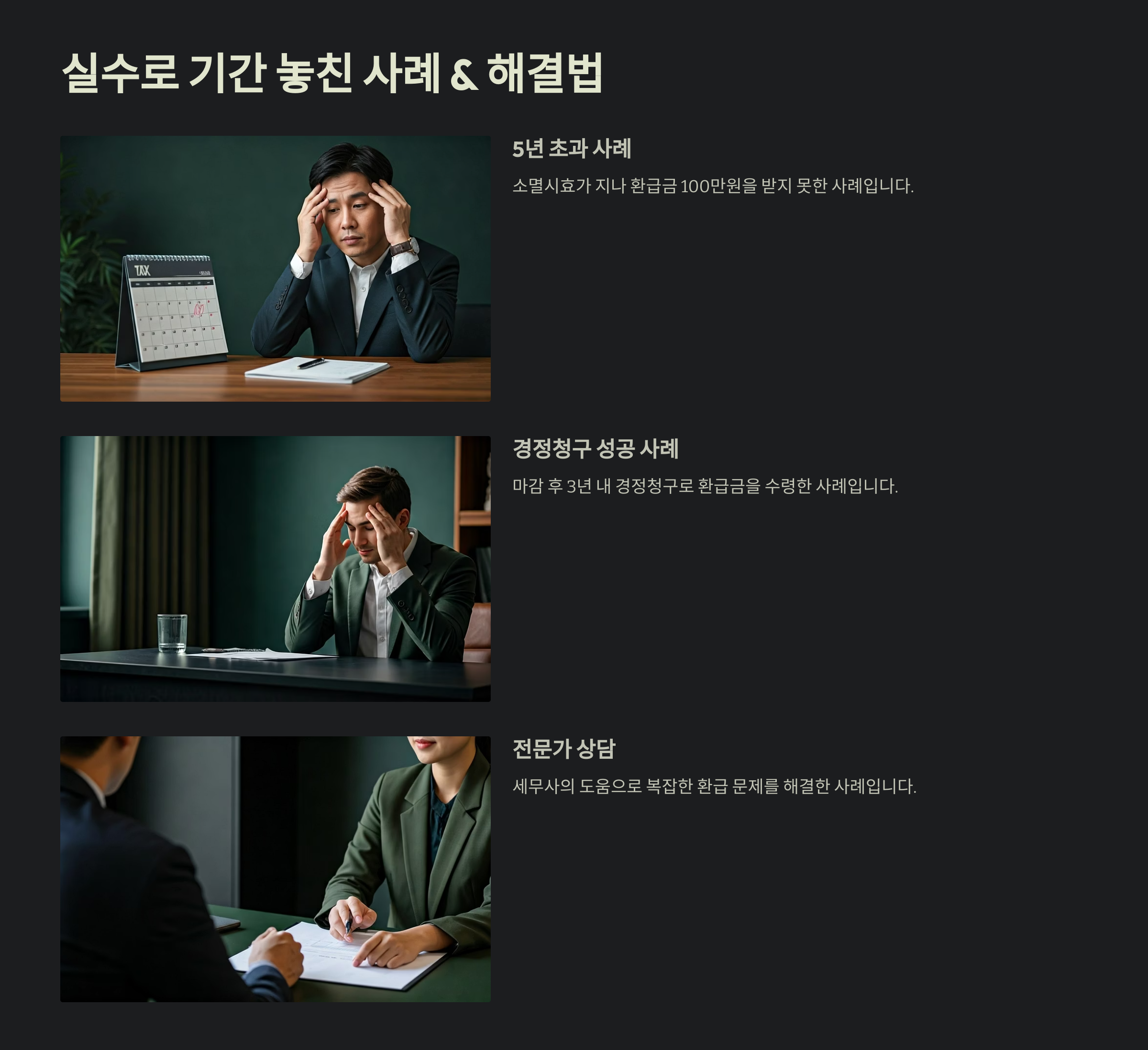 | 기한 초과 | 5년 지나 환급 요청 | 불가 (시효 소멸) |