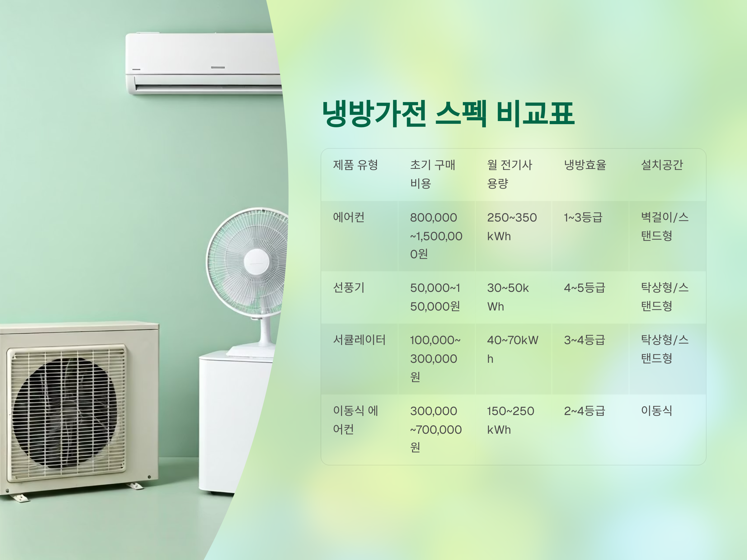 ⚙️ 냉방가전 스펙 비교표