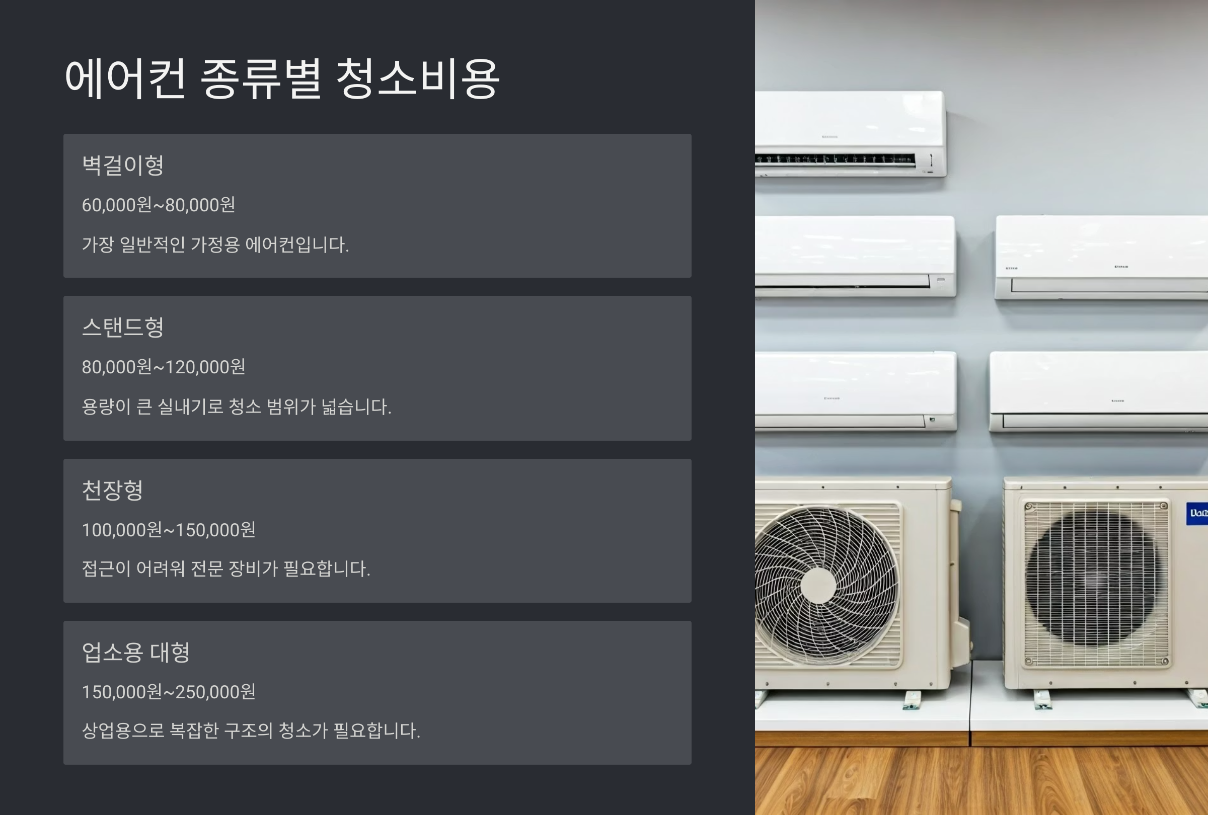 에어컨의 구조가 복잡해질수록 인건비와 장비 사용이 늘어 청소비용이 비싸지는 구조예요. 따라서 내 에어컨이 어떤 타입인지부터 정확히 확인하는 것이 중요해요. 🧾