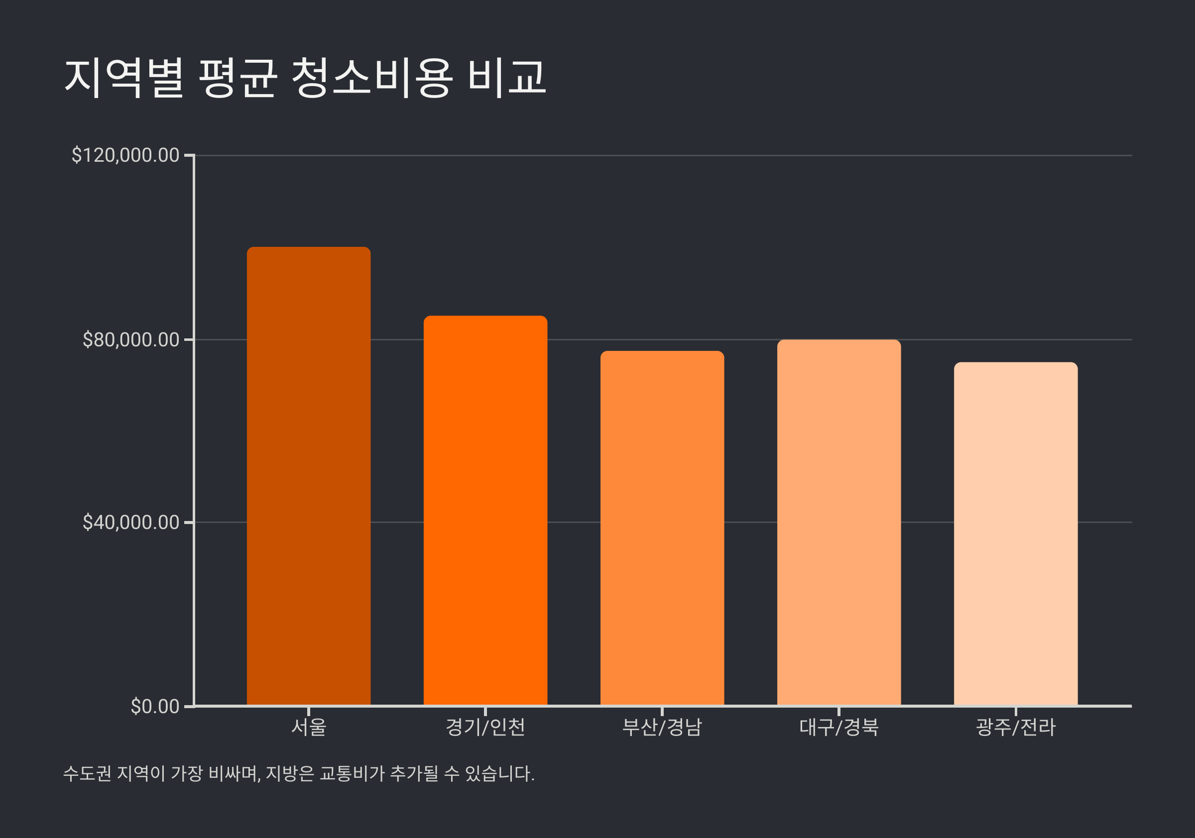 청소비용은 지역의 평균 소득 수준, 인건비, 업체 수, 교통 접근성 등에 따라 결정돼요.