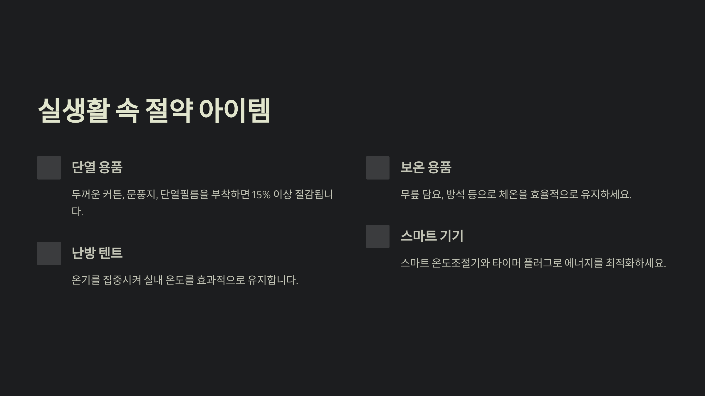 작은 절약이 모이면 한겨울에도 따뜻하면서도 지갑은 가벼워지지 않아요. 😊