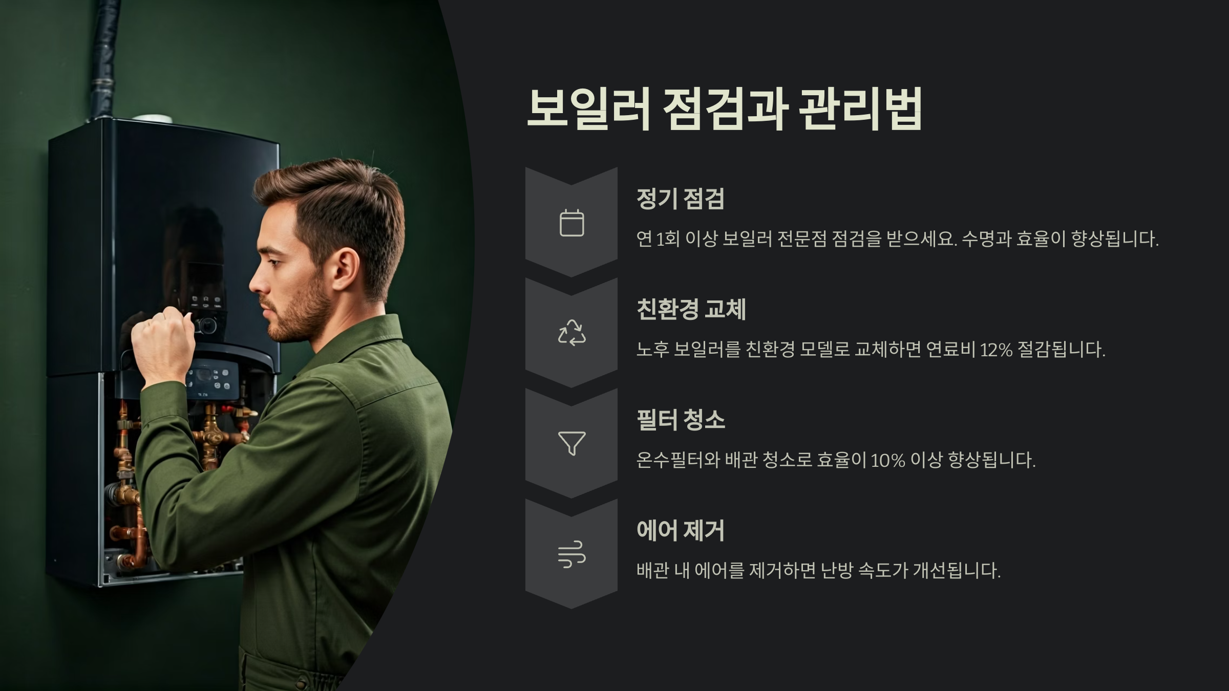 👉 지자체에 따라 무료 보일러 점검 지원도 있어요. 주민센터에 문의해보세요!