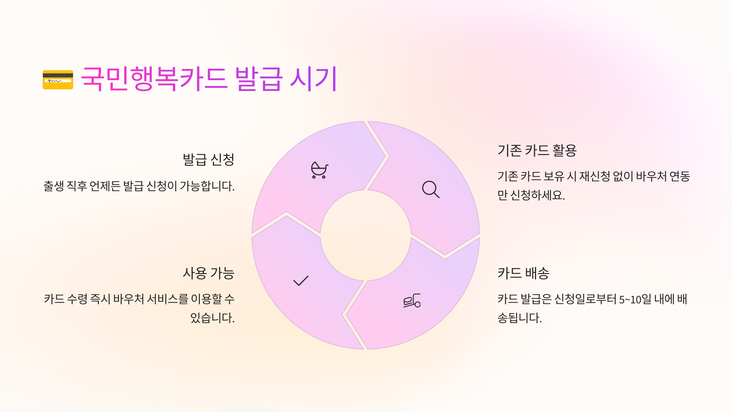 카드가 없다면 먼저 국민행복카드를 발급받아야 하고, 이미 카드가 있다면 자동으로 등록돼요.