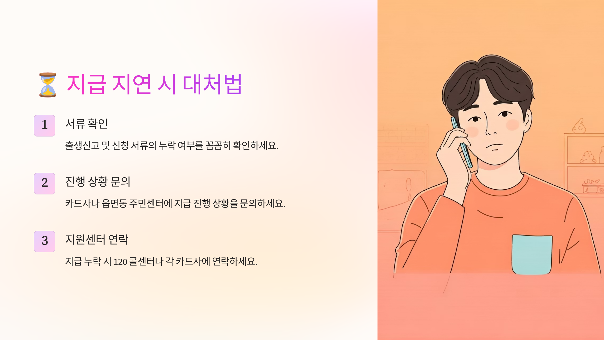 아직 심사 중이면 기다리면 되고, 심사가 완료됐는데도 미지급이면 주민센터 또는 카드사에 바로 문의해요.