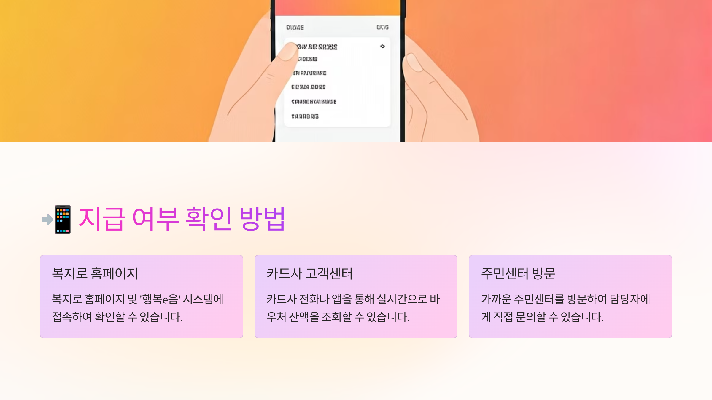 알림 못 받았더라도 복지로나 카드사 앱에서 직접 확인할 수 있으니 걱정하지 않아도 돼요!