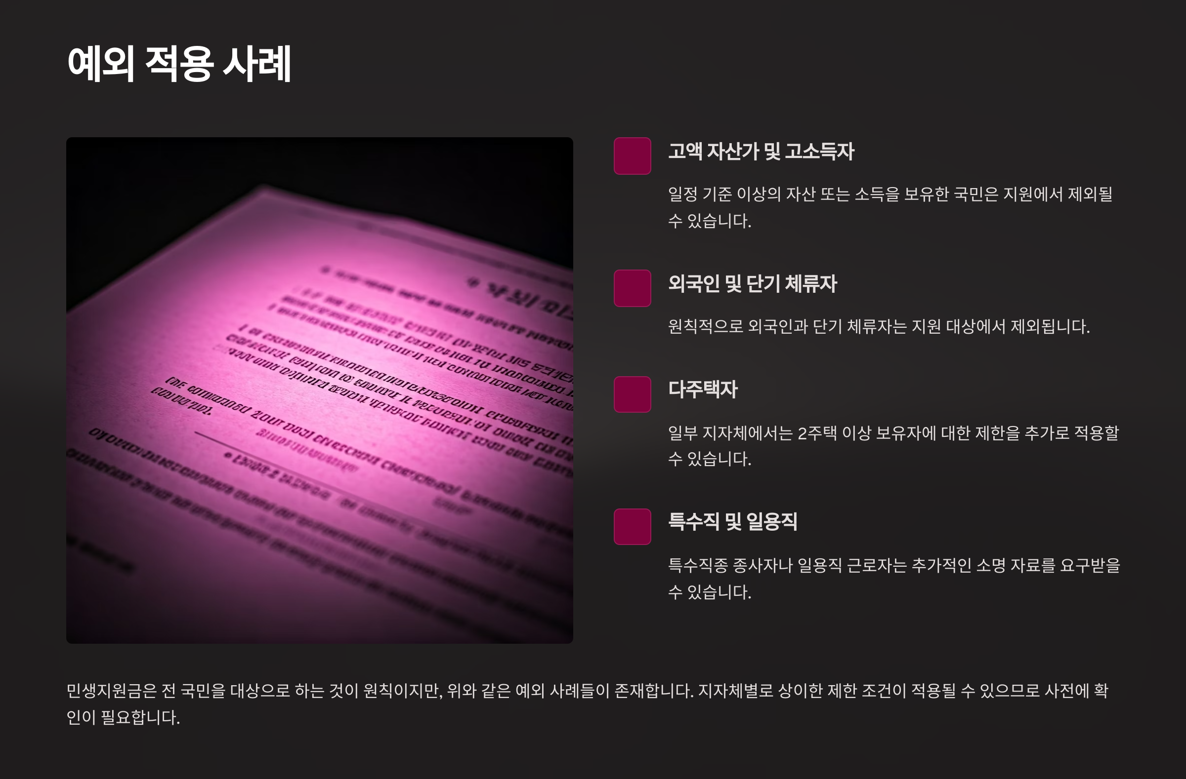 예외 적용은 대상자가 몰라서 못 받는 경우가 많아요.
