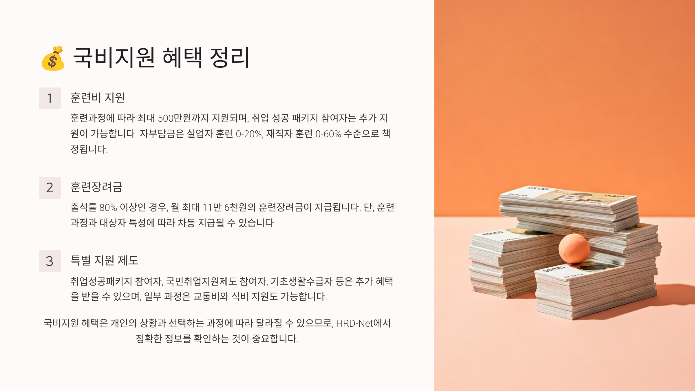 일부 과정은 교재비와 시험 응시료까지 지원되기도 해요.
