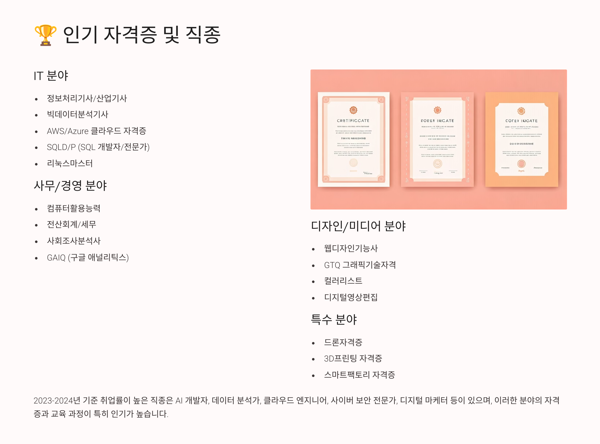| 자격증/직종 | 과정 특징 | 활용 분야 |