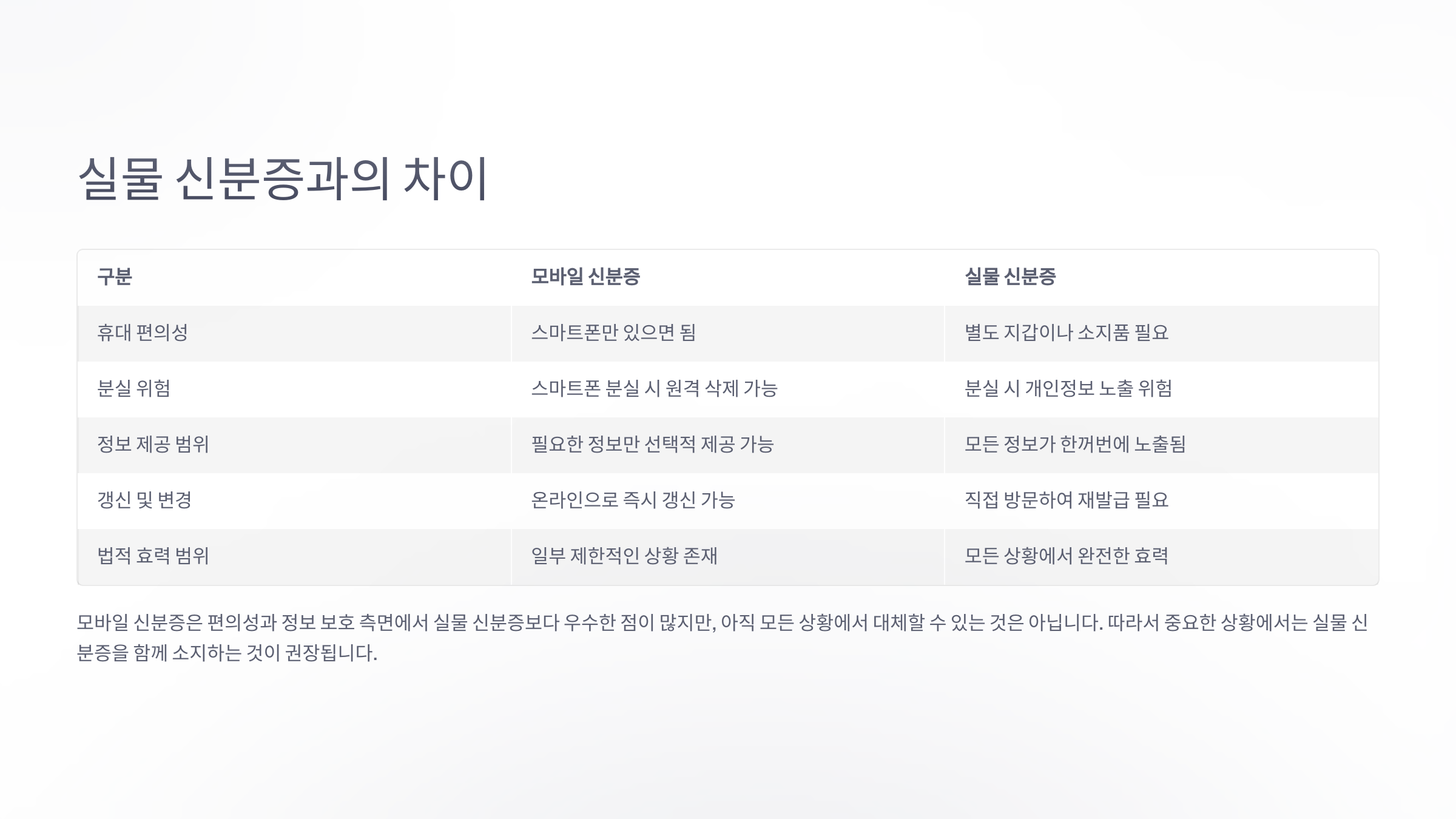 ⚖️ 실물 vs 모바일 신분증 비교표