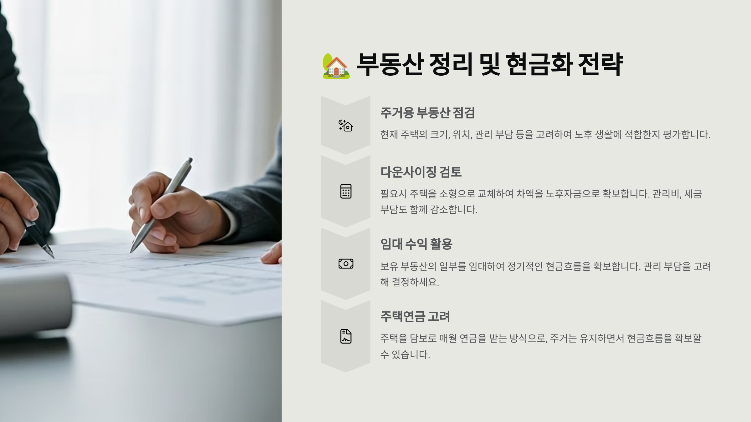 🏘️ 퇴직자 부동산 현금화 전략 비교