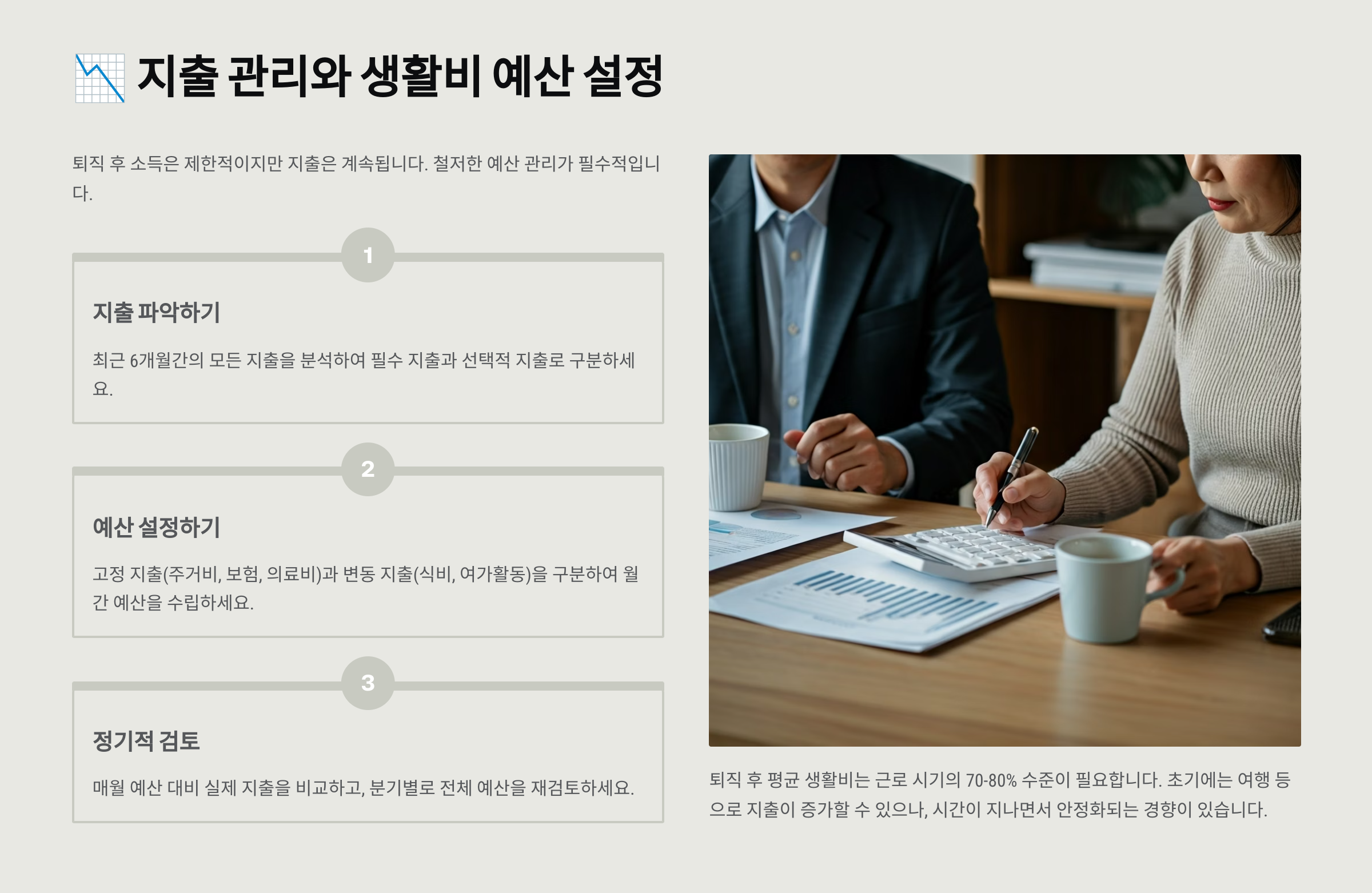 퇴직 후 가장 크게 달라지는 건 바로 "고정 수입"이 줄어든다는 점이에요.