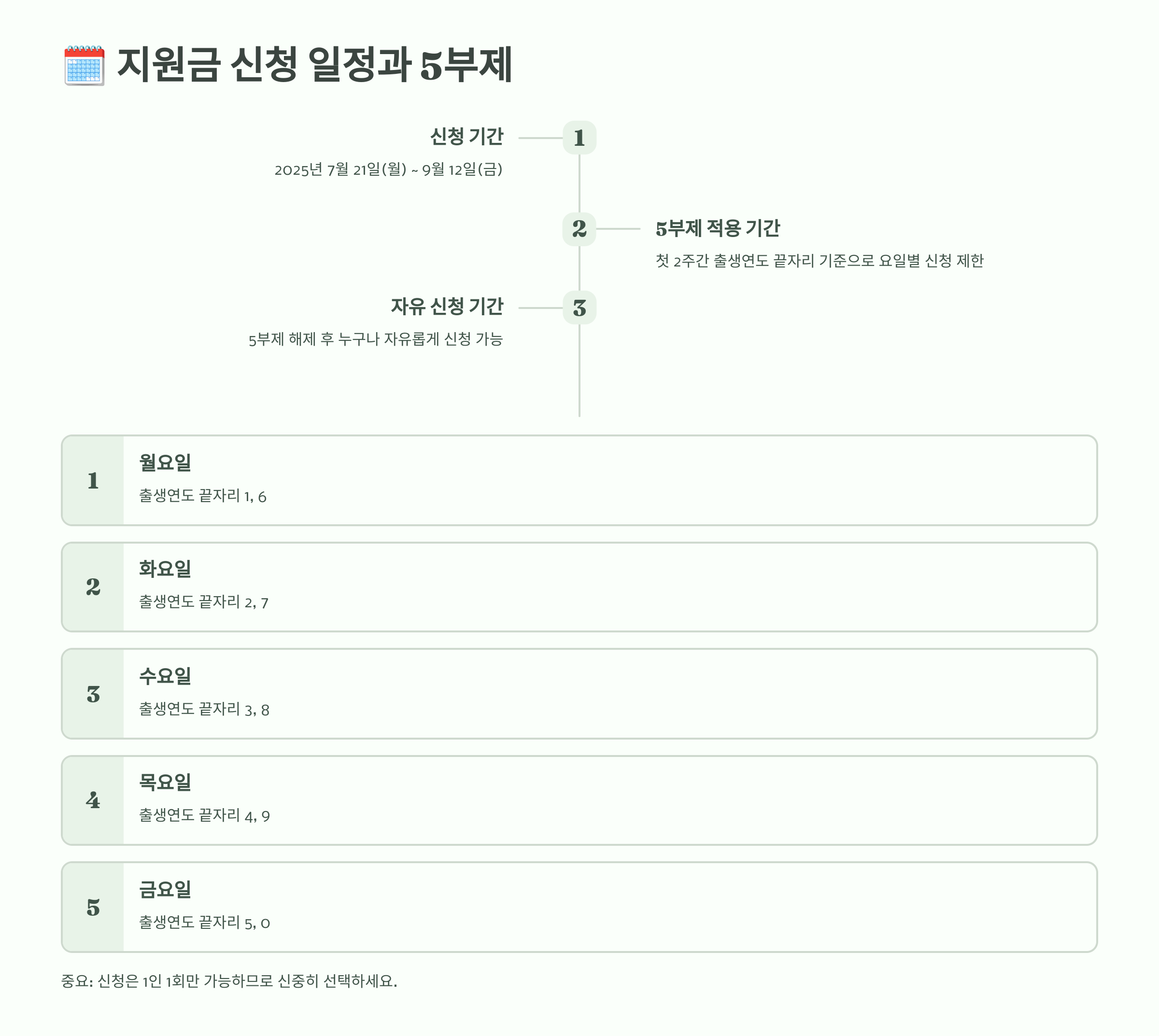 🗓️ 지원금 신청 일정과 5부제