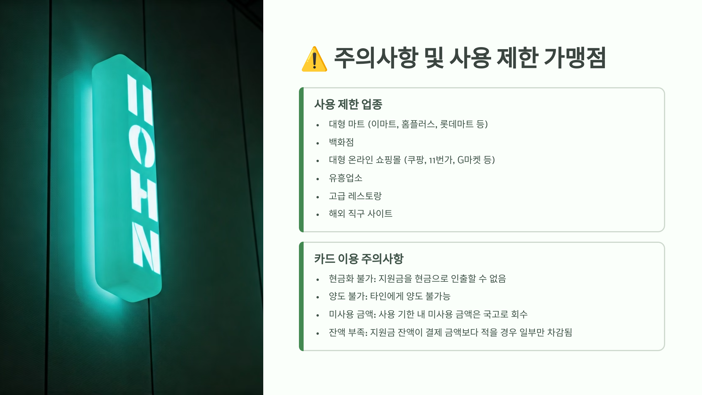 ⚠️ 주의사항 및 사용 제한 가맹점