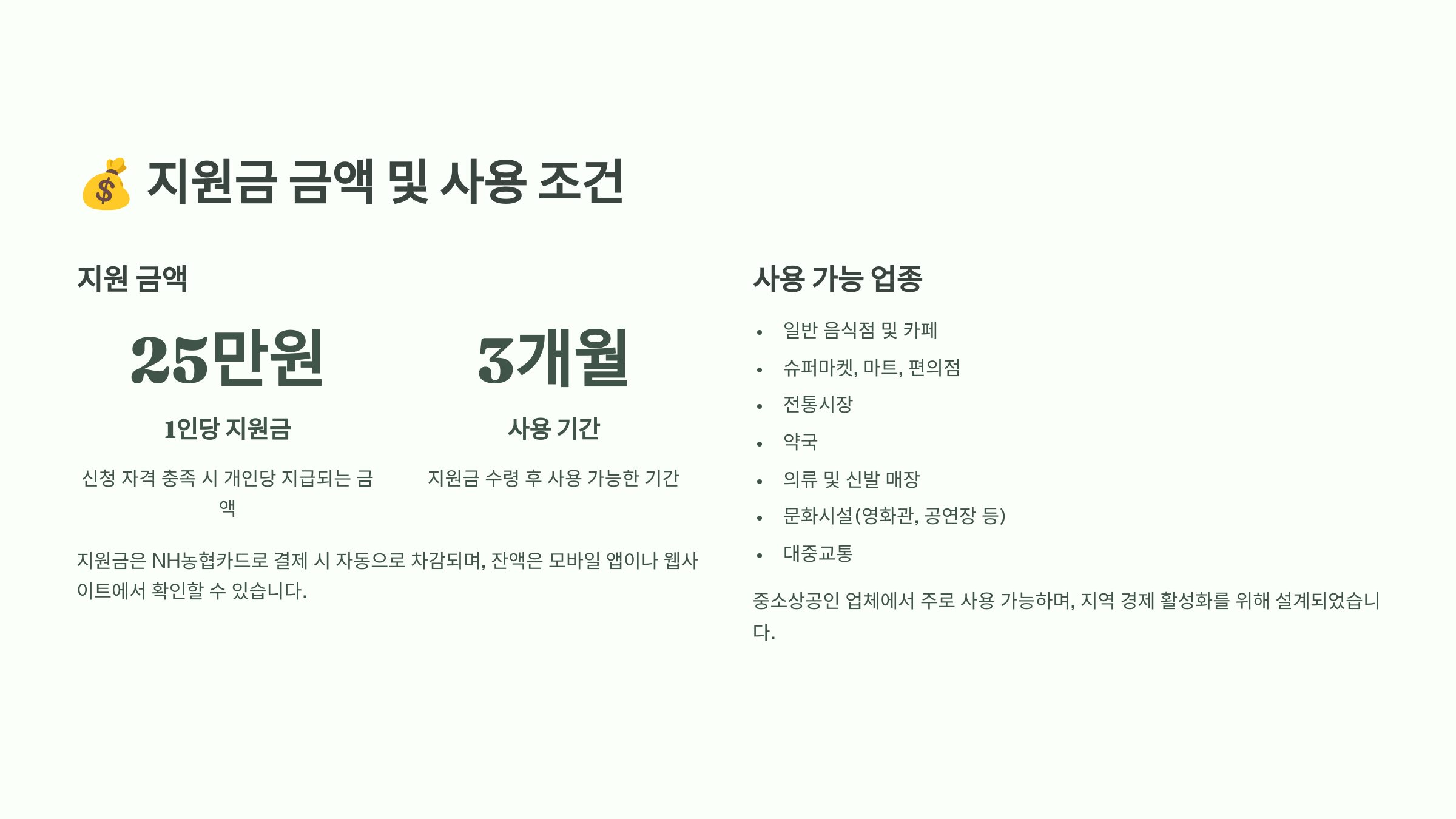 💰 지원금 금액 및 사용 조건