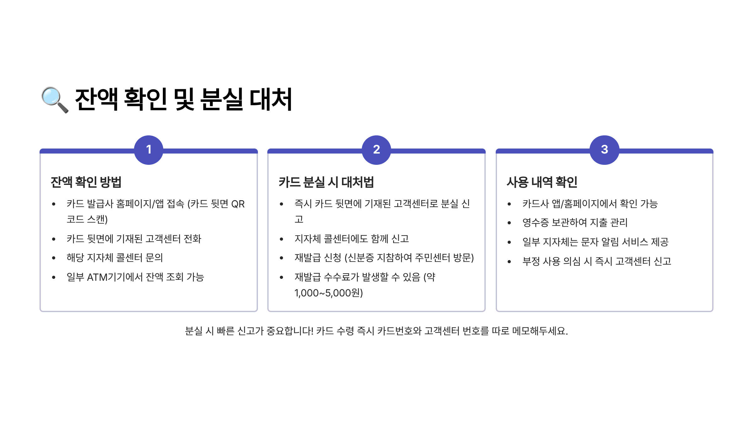 일부 지자체는 앱 연동형 선불카드를 제공하기도 하며, 사용 내역을 실시간으로 확인할 수 있어요.