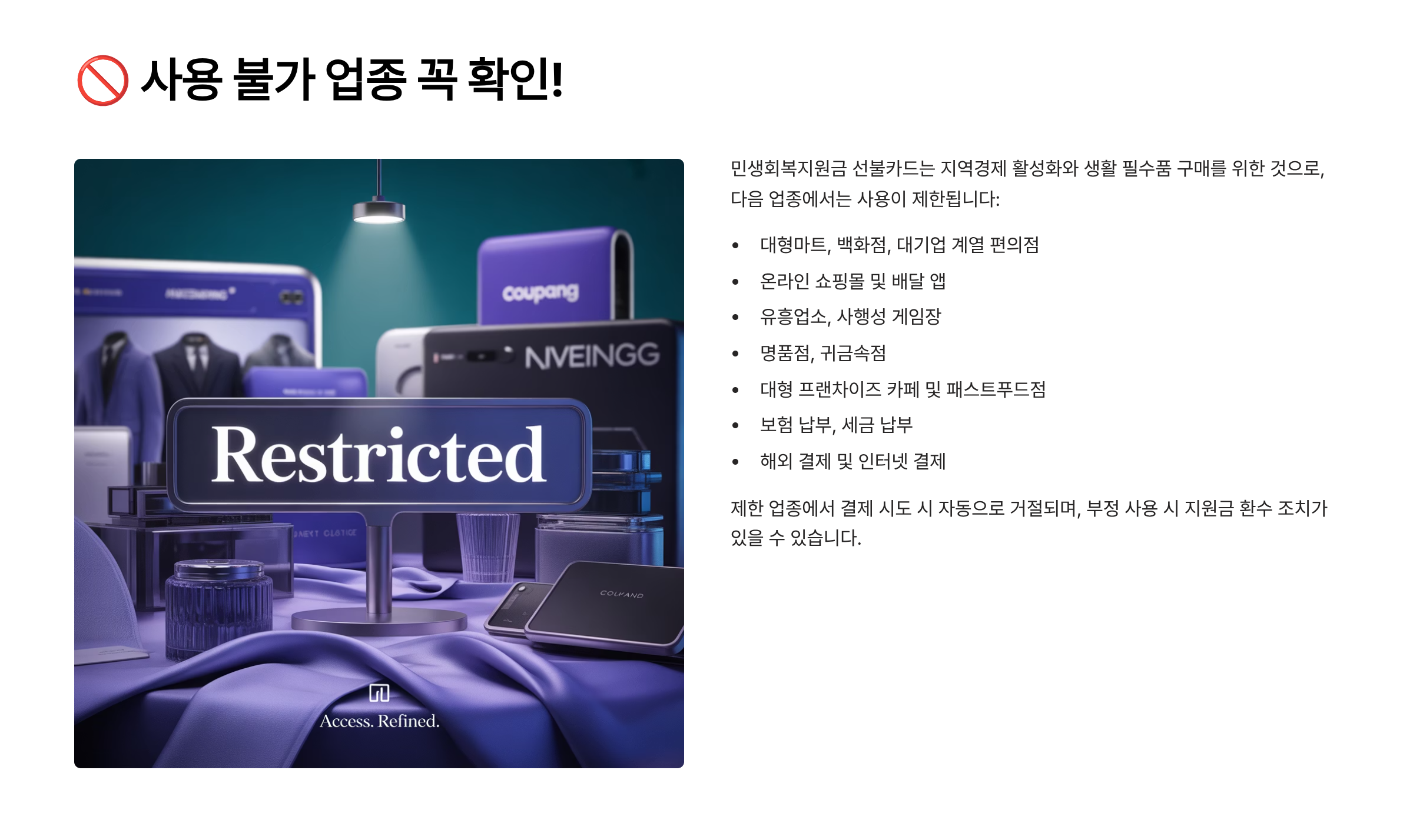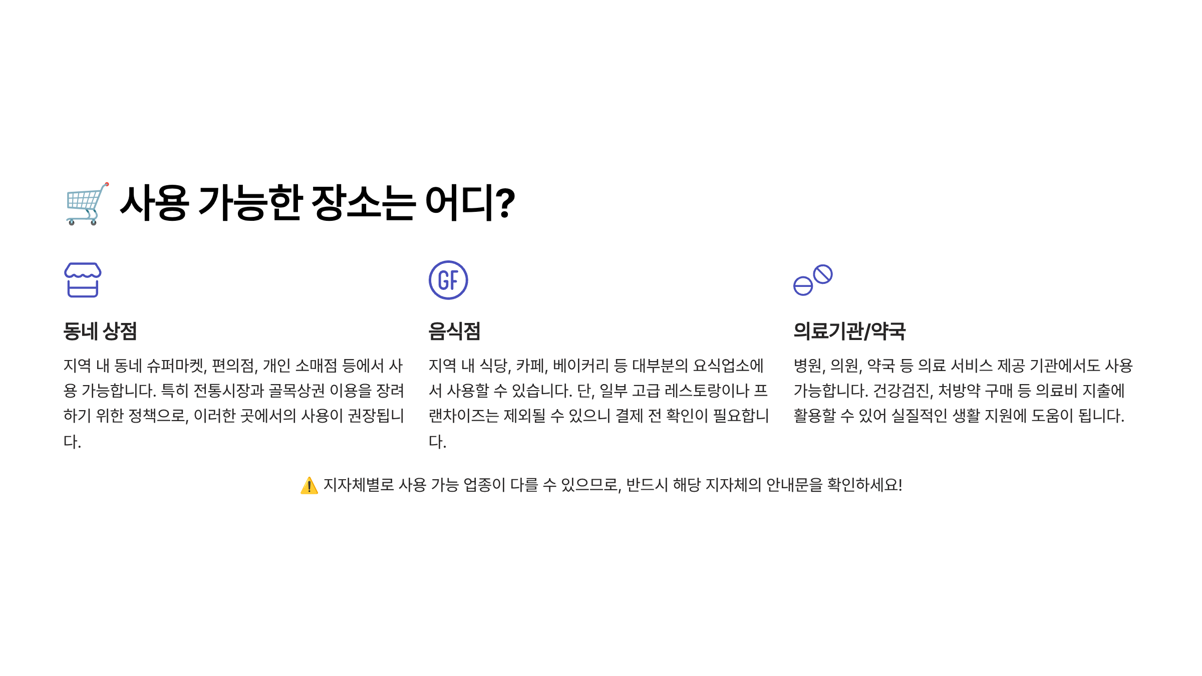 그래서 이번 글에서 사용 가능한 장소와 제한 업종, 잔액 조회 방법까지 한 번에 알려드릴게요! ✅