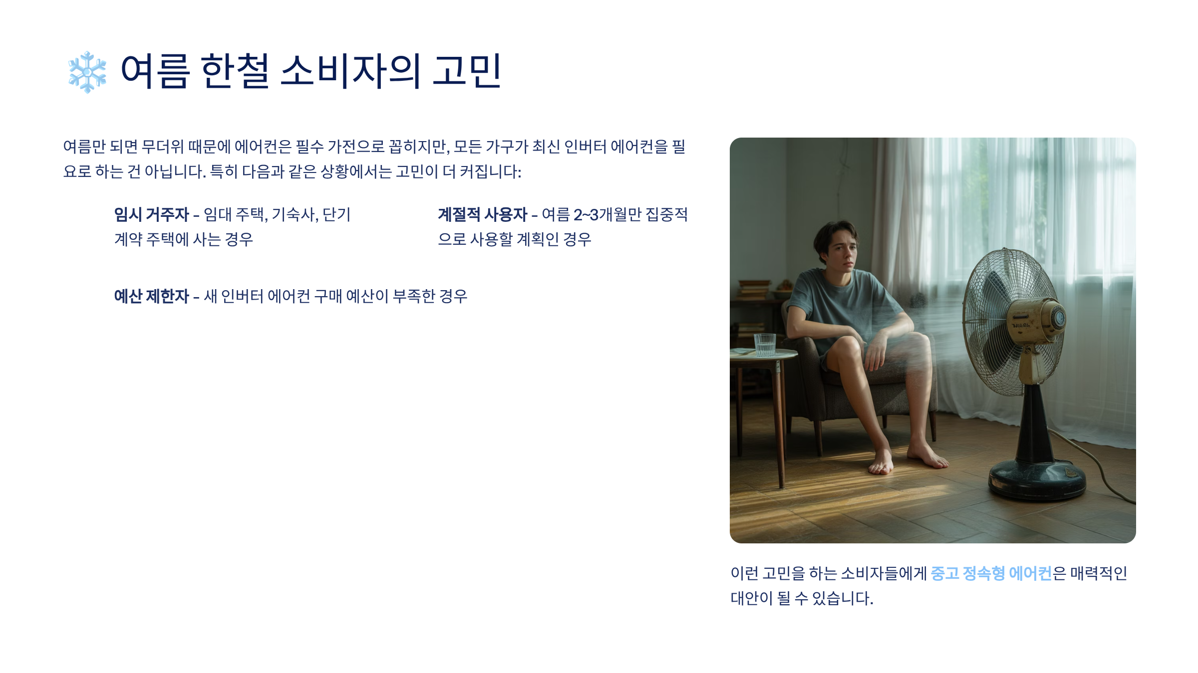 Q1. 정속형 중고, 여름 한철용으로 충분할까요?