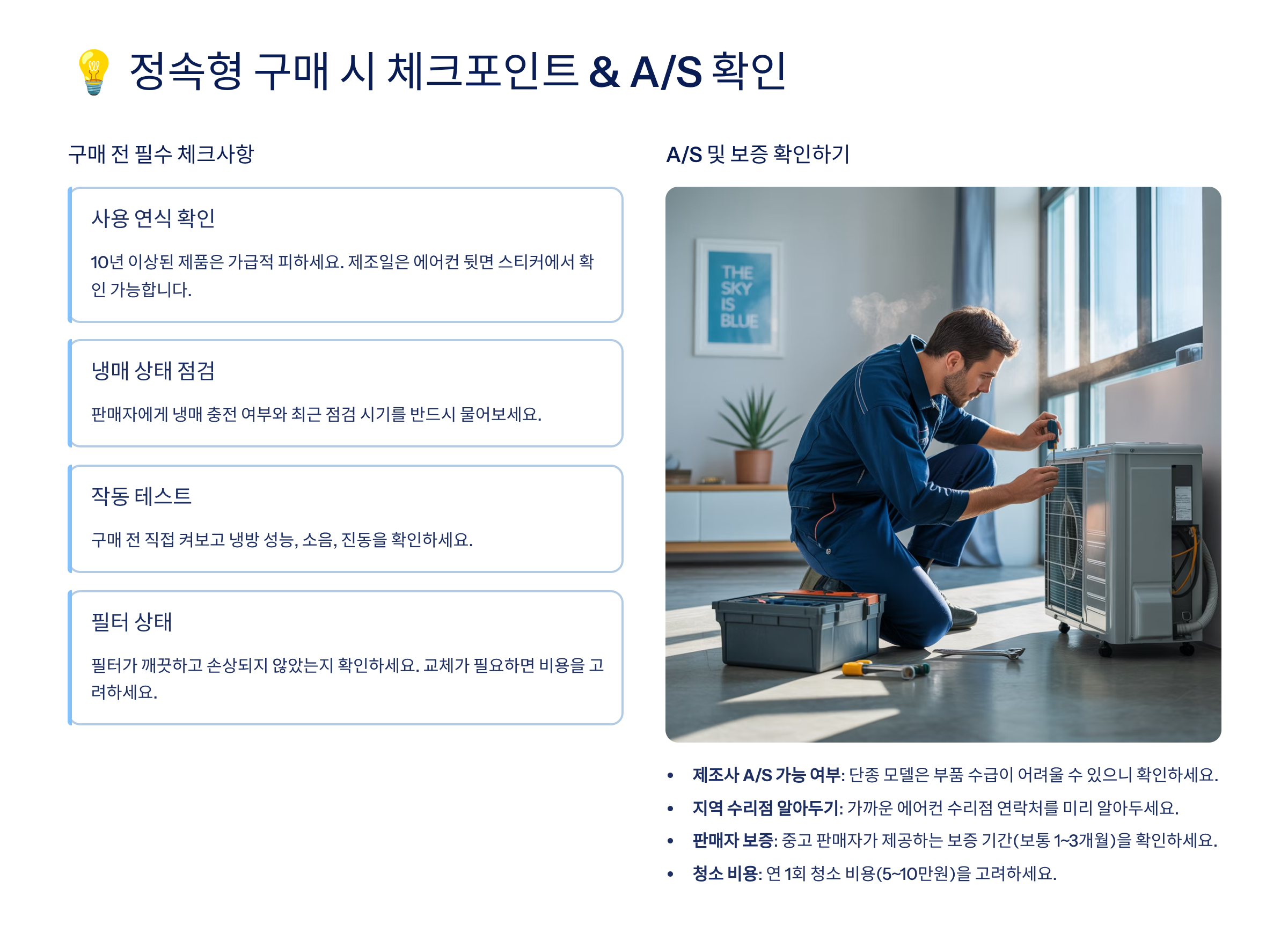 ✅ 정속형 중고 에어컨 체크리스트 요약