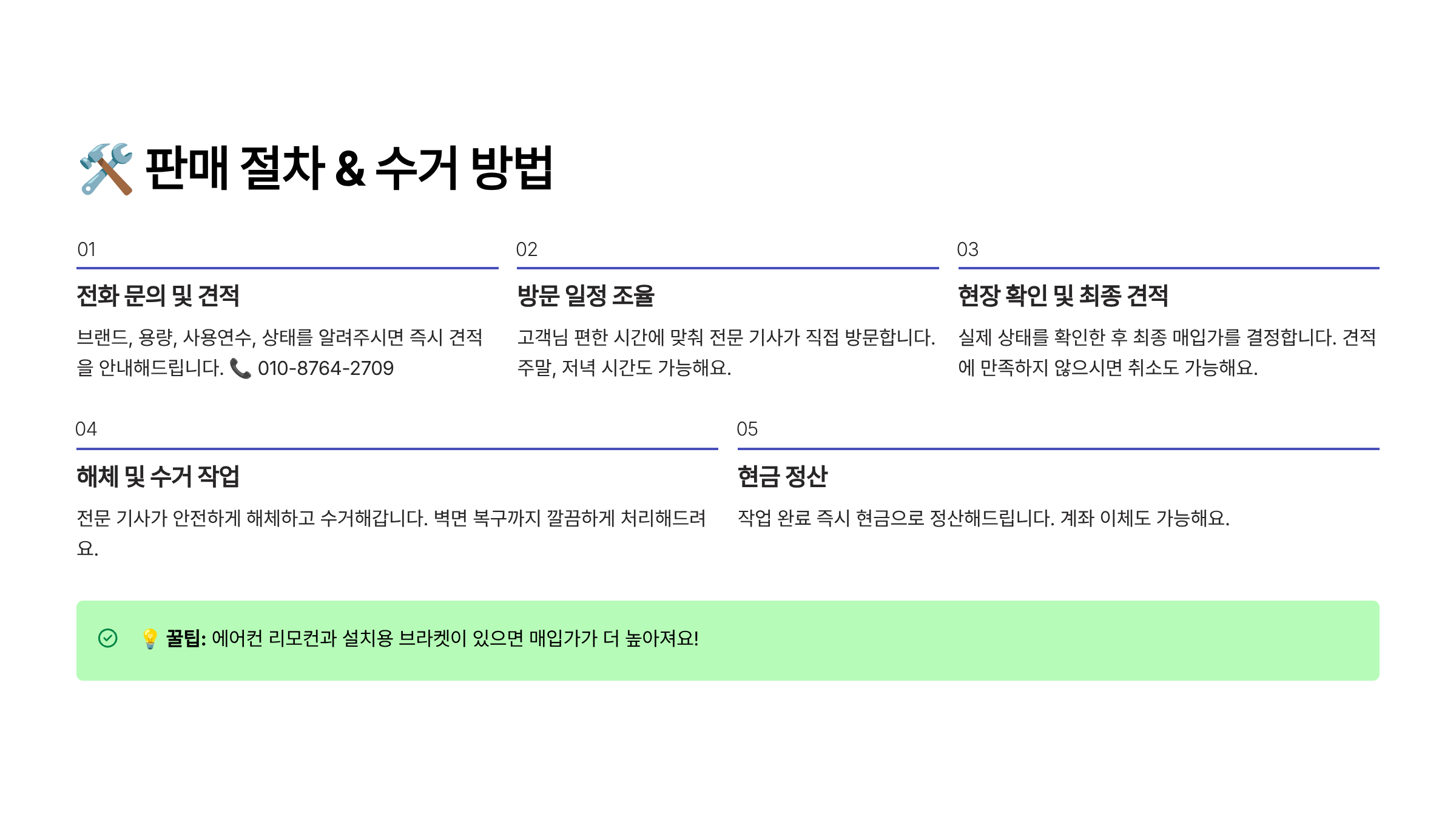 에어컨 판매는 어렵지 않아요. 오산 전 지역에서는 상담 → 방문 → 수거 → 정산까지 전부 **하루 안에 끝낼 수 있는 시스템**으로 운영되고 있어요.