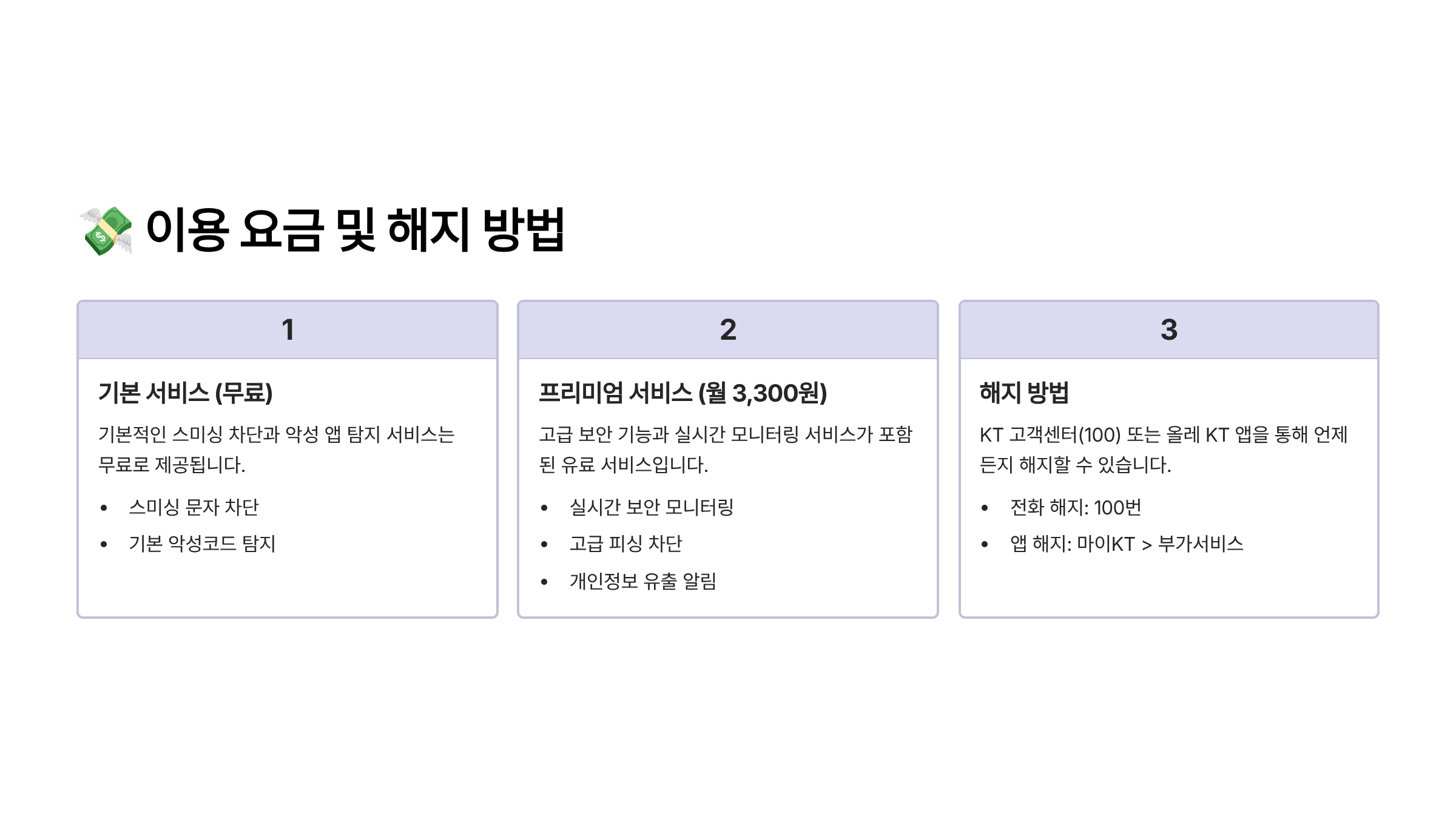 ⓘ 본 콘텐츠는 2025년 9월 기준이며, KT의 보안 정책은 예고 없이 변경될 수 있어요. 실제 가입, 해지, 요금 관련 사항은 반드시 KT 공식 채널에서 최신 정보를 확인해주세요.
