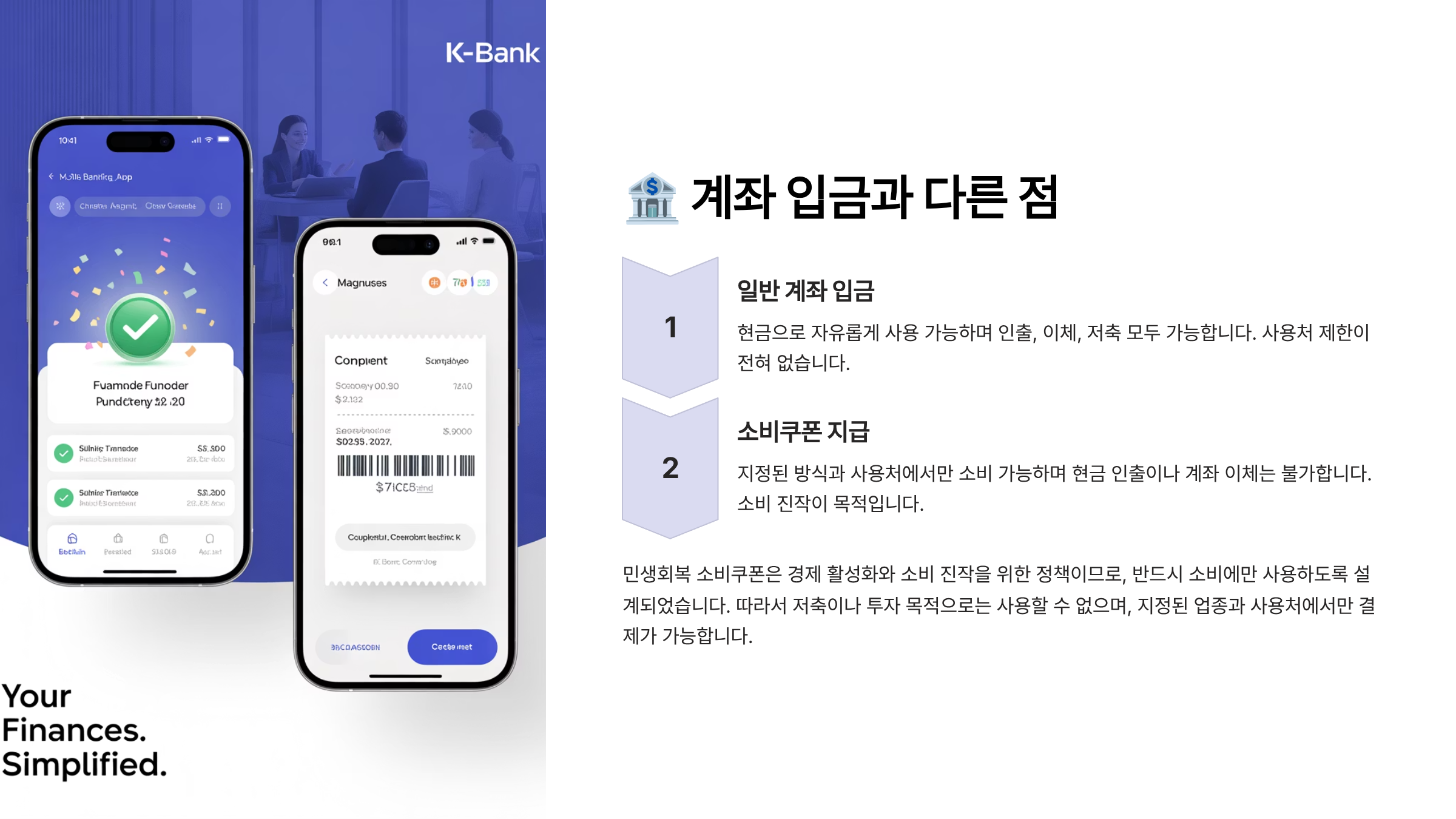 소비쿠폰은 현금이 계좌로 들어오는 게 아니에요. 따라서 통장에 돈이 입금되는 방식이 아니라 지정된 수단(카드, 상품권, 선불카드)으로만 지급돼요.