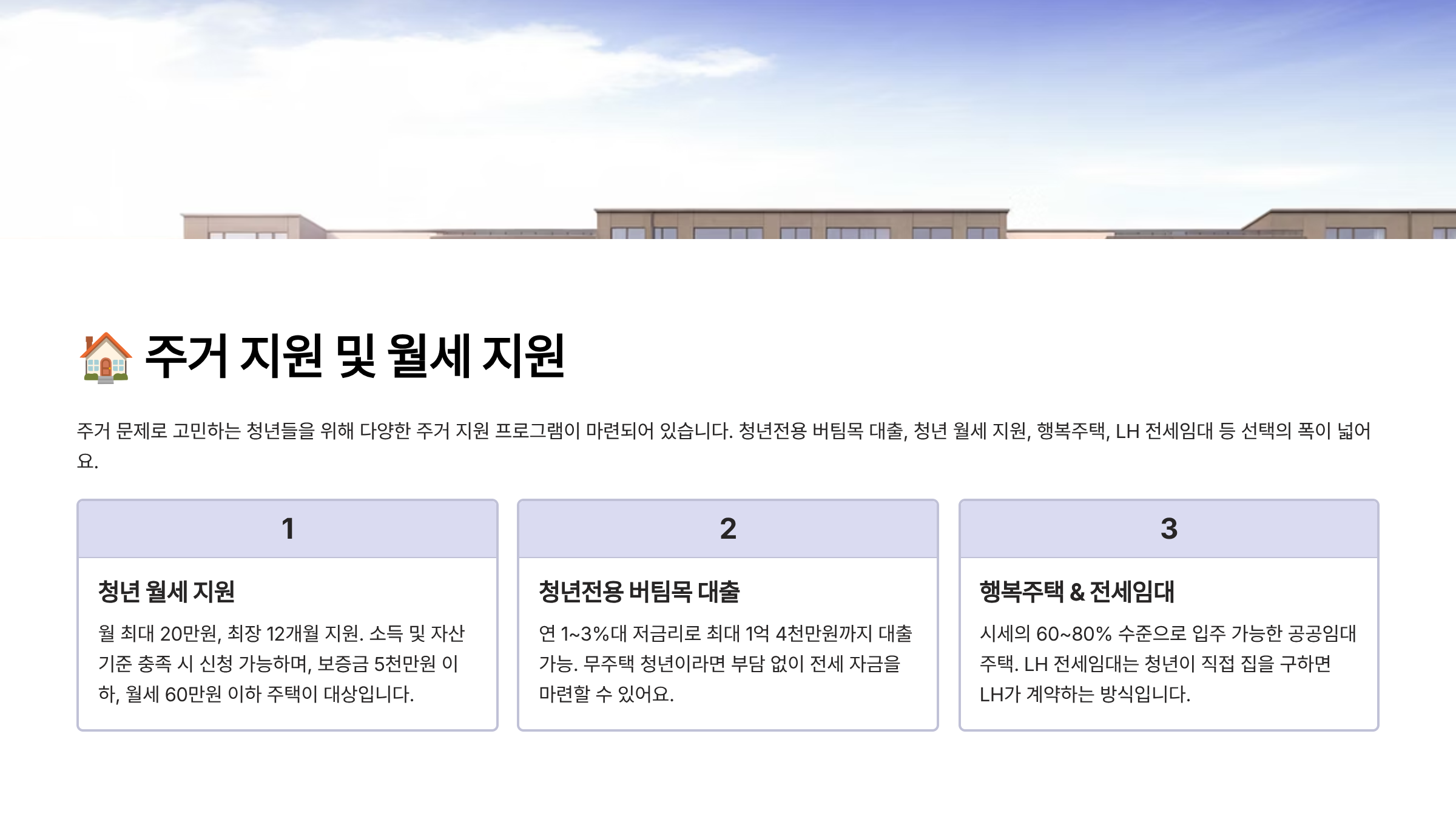 거주 지역별로 주거 정책이 다르게 적용되므로, 통합지원센터에서 지역 맞춤형 정보까지 확인할 수 있는 게 큰 장점이에요. 주거 불안에 시달리는 청년이라면 꼭 챙겨야 할 혜택이에요.