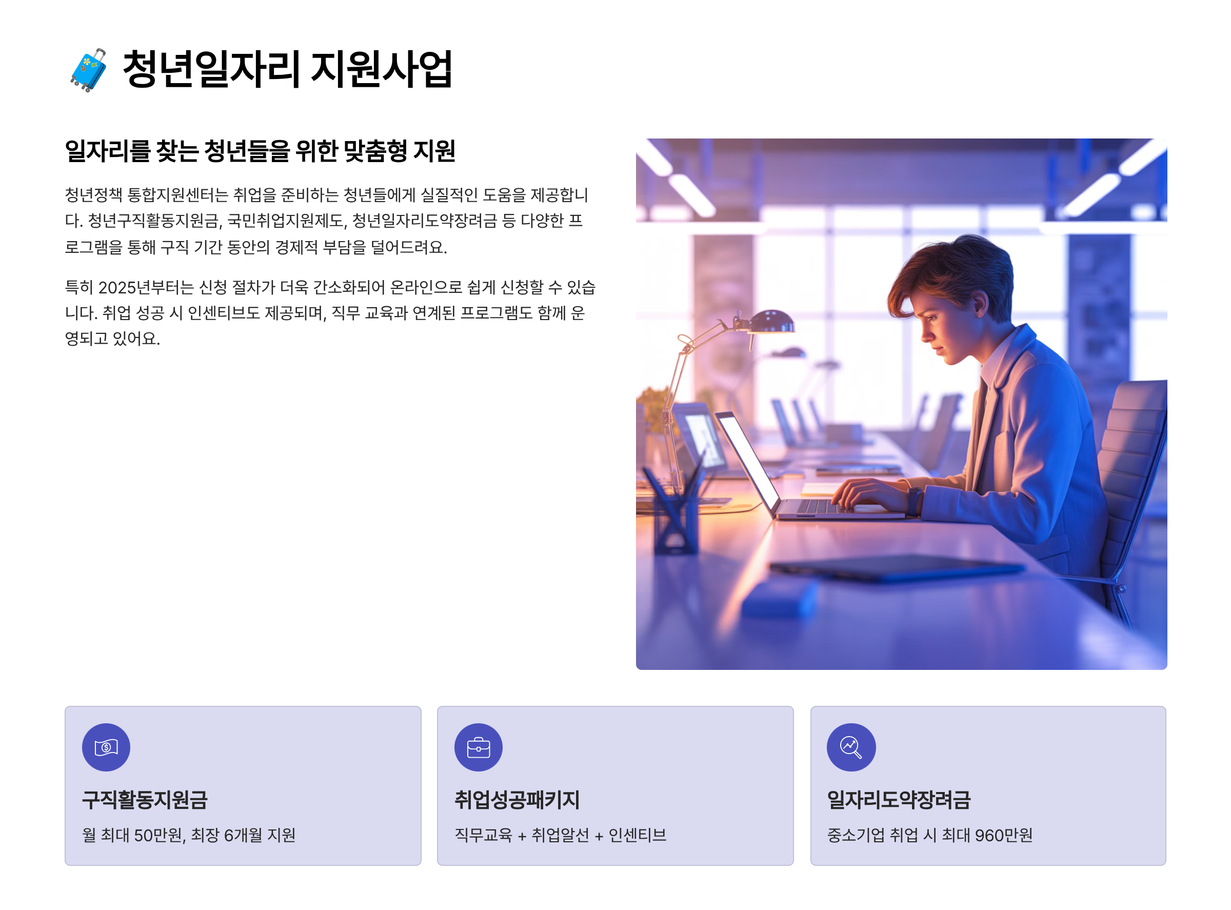 청년일자리 지원은 단순히 취업에 머무르지 않고, 직무 역량 강화와 지속 가능한 커리어 구축을 돕는 구조로 되어 있어요. 취준생이라면 무조건 먼저 확인해봐야 해요.