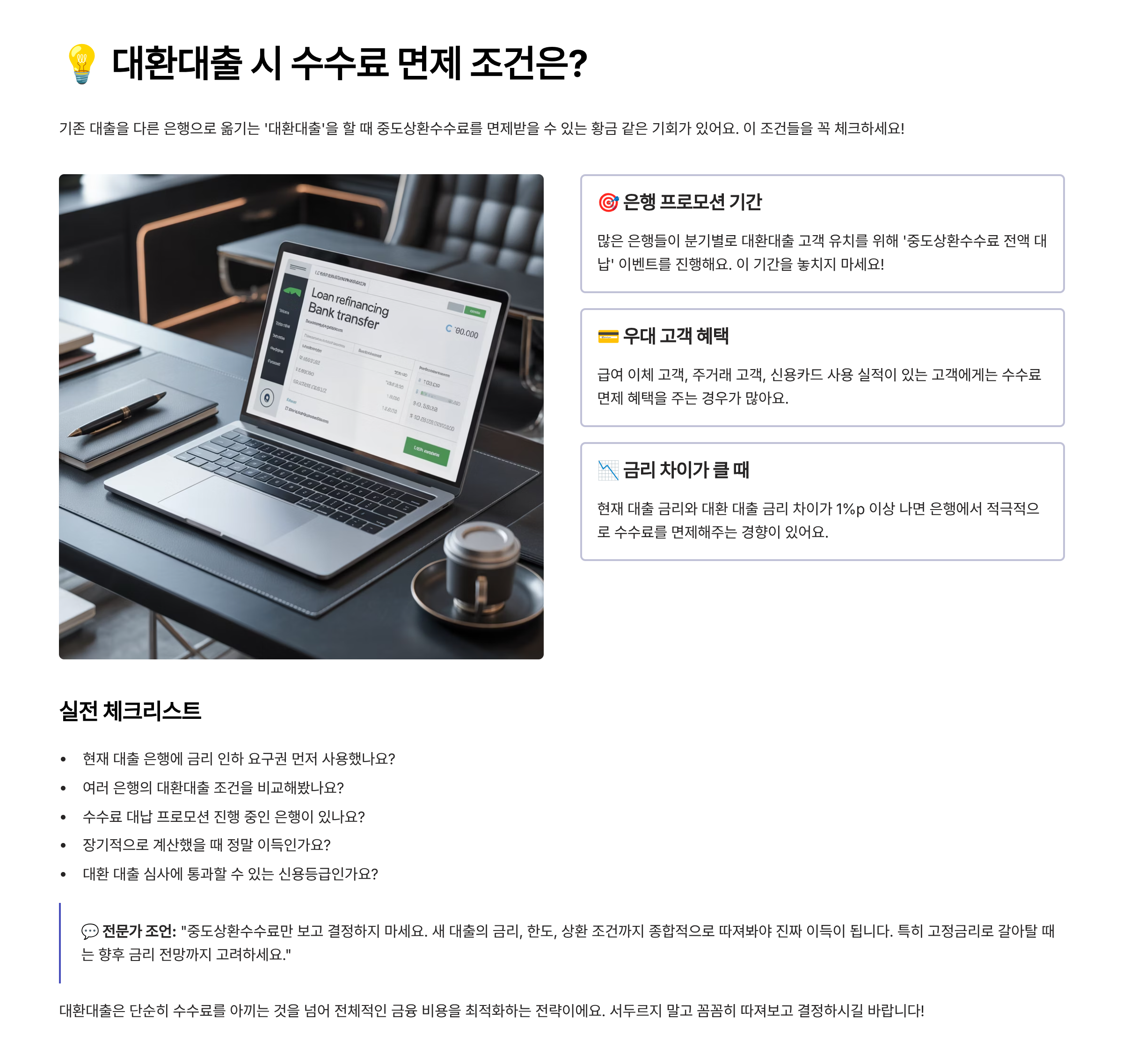 💡 대환대출 시 수수료 면제 조건은?