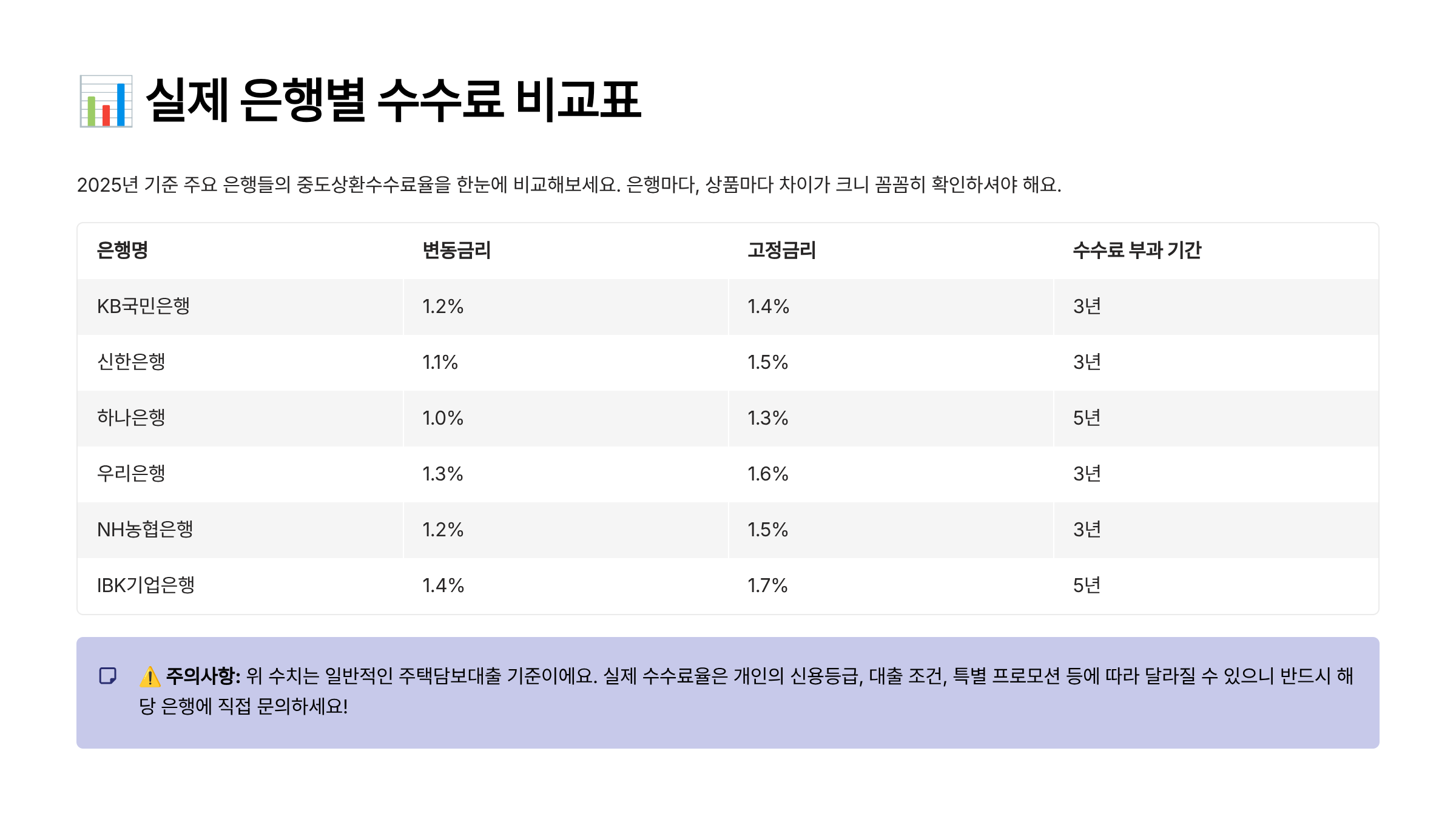 🏦 주요 은행 중도상환수수료 비교 (2025년 기준)
