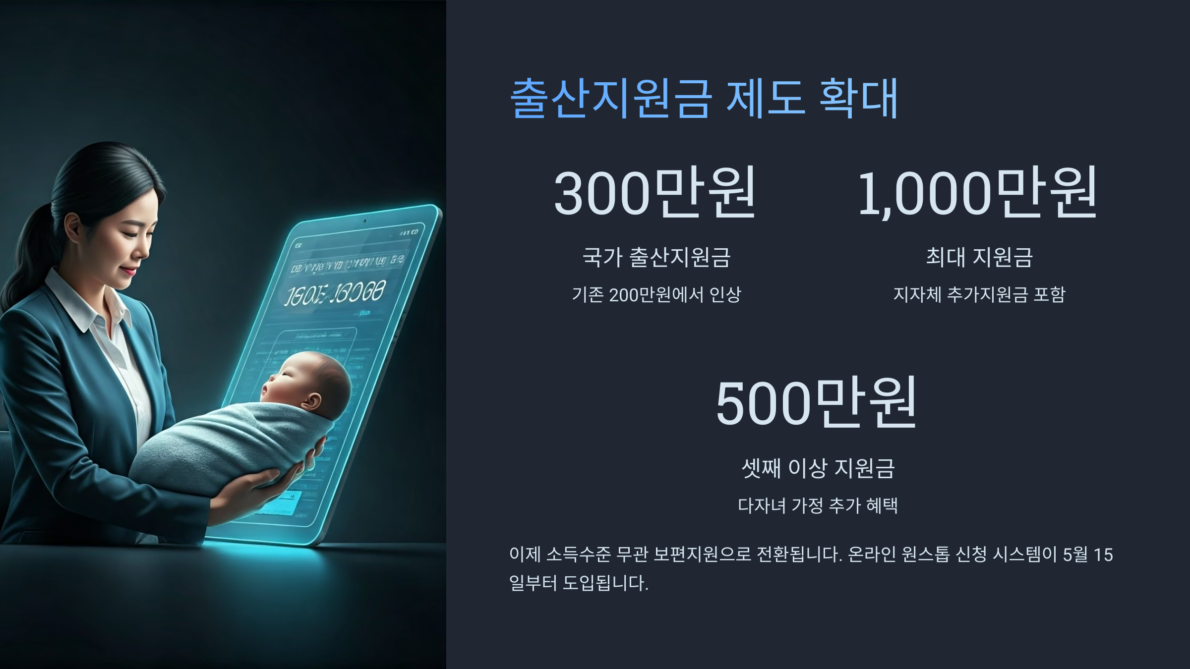 📋 목차🍼 출산지원금 제도 확대👨‍👩‍👧‍👦 첫만남이용권 상향💼 육아휴직 제도 개편🏠 주거·청약 다자녀 우대 강화📚 교육·보육비 국가책임 확대🎁 신설된 '맘편한 패키지'❓ FAQ2025년 대한민국의 출산정책이 크게 달라졌어요! 저출산 극복을 위해 정부는 보다 현실적인 지원을 확대하고, 부모들의 부담을 줄이는 방향으로 정책을 강화했답니다. 올해는 출산지원금 인상은 물론, ‘맘편한 서비스’ 개편, 육아휴직 기간 확대, 보육 국가책임 강화까지 전방위적인 변화가 있었어요. 지금부터 바뀐 주요 항목들을 하나하나 살펴볼게요! 😊 ‘내가 생각했을 때’ 2025년 정책은 드디어 실효성을 갖춘 변화들이 많았다고 느껴졌어요.체감도도 높고 실생활에 바로 도움되는 게 많았거든요. 🍼 출산지원금 제도 확..
